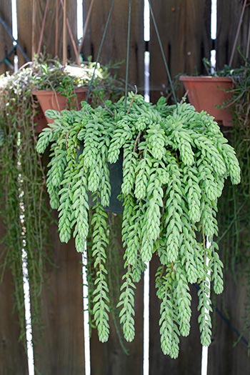 Ένα ξεχωριστό παχύφυτο ιδανικό για κρεμαστά καλάθια! Οι βλαστοί του φυτού είναι σχετικά λεπτοί, έχουν κρεμοκλαδή ανάπτυξη και μήκος μέχρι 60 εκατοστά. Πάνω τους αναπτύσσονται σε πυκνή διάταξη σαρκώδη φύλλα με γαλαζοπράσινο χρώμα. Στις άκρες των βλαστών εμφανίζονται το καλοκαίρι ροζ-κόκκινα άνθη. Όπως τα περισσότερα παχύφυτα μπορεί να τοποθετηθεί και σε εξωτερικό χώρο (με προστασία από τις χαμηλές θερμοκρασίες του χειμώνα). Σε ότι αφορά το φως προτιμά τις φωτεινές θέσεις και μπορεί να εκτεθεί ακόμα και σε άμεσο ηλιακό φως. Επίσης μπορεί να αντέξει και τα πιο σκιερά σημεία. Όπως όλα τα παχύφυτα δεν χρειάζεται συχνό πότισμα και συχνή λίπανση.