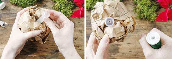 Το χαρτί τσαλακώνεται ώστε να δημιουργηθεί μία μπάλα. Στη μέση τοποθετείται η αμπούλα και σταθεροποιείται με σύρμα.