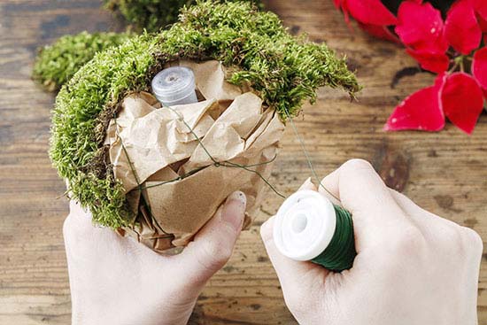 Γύρω από τη μπάλα τοποθετείται το moss.