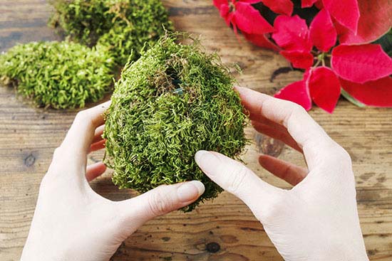 Η μπάλα από moss έχει δημιουργηθεί και στο κέντρο έχει την αμπούλα.