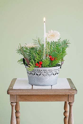 Οι λευκές ζέρμπερες αποτελούν μία αναπάντεχη επιλογή για χριστουγεννιάτικη διακόσμηση. Με τους κατάλληλους συνδυασμούς δημιουργούν μια κομψή πρόταση με την αίσθηση νεανικής φρεσκάδας. Κατασκευή ιδανική για δώρο αλλά και για στολισμό τραπεζιού.
